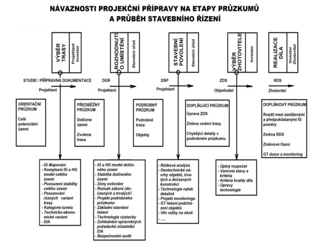 - Etapy průzkumu musí být zásadně sladěny s jednotlivými fázemi přípravy projektové dokumentace tunelu,