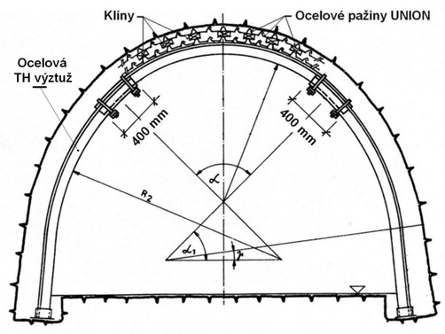 Schéma příčného řezu štoly s použitím poddajné výstroje