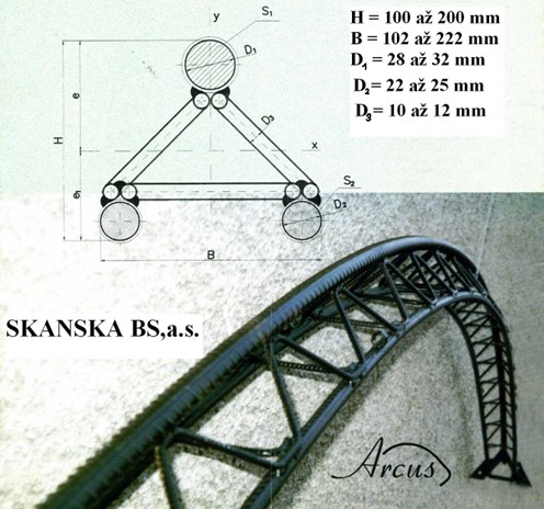 Obr. 13 Příklad příhradové výstroje, systém „ARCUS“