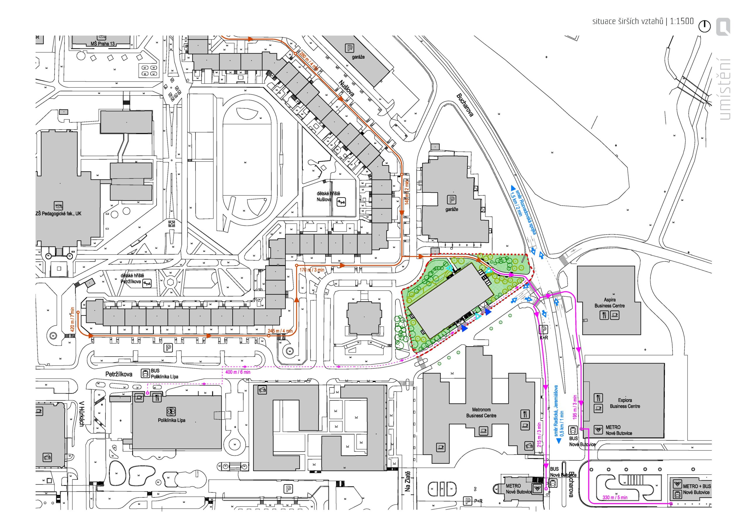 P+R Petržílkova: situace širších vztahů