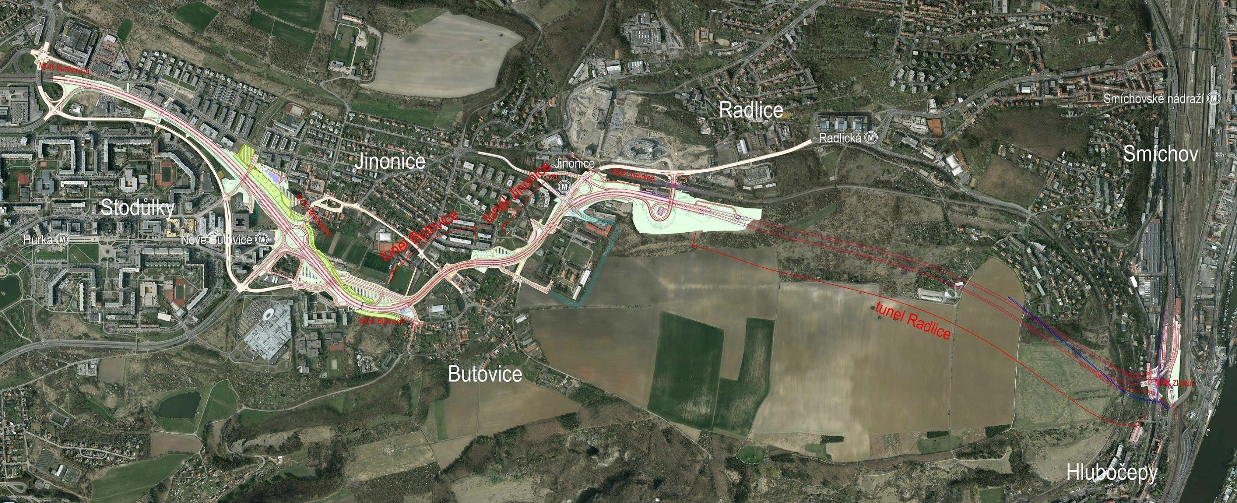 Radlická radiála ve svém výsledném řešení plní funkci hlavní sběrné komunikace pro prostor Radlic, Jinonic a Jihozápadního města. Prodloužením Rozvadovské spojky propojuje silniční a městský okruh. Prochází v západo-východním směru celým řešeným územím a prostřednictvím pěti mimoúrovňových křižovatek je napojena na nižší místní komunikační síť (MÚK Bucharova, MÚK Řeporyjská, MÚK Butovice a MÚK Jinonice) a v MÚK Zlíchov na městský okruh v prostoru Zlíchovského tunelu.