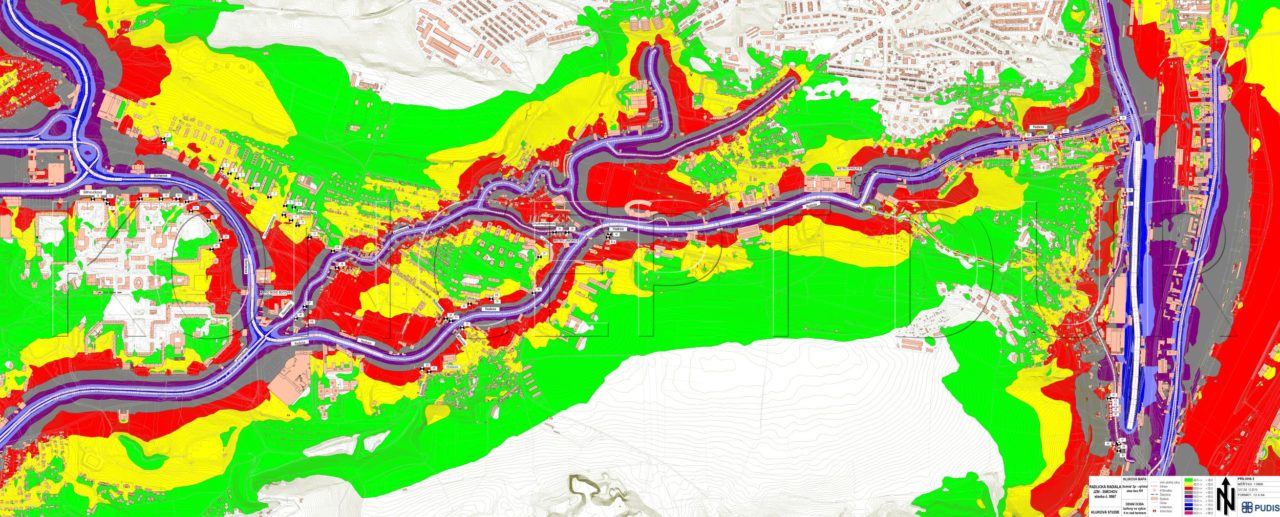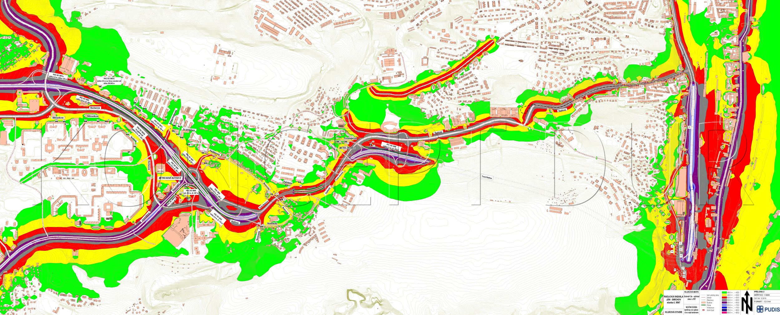 Byly provedeny akustické výpočty pro období výhledu Územního plánu pro aktivní variantu s Radlickou radiálou (scénář 3a) a pro nulovou variantu (scénář 3p) bez realizace Radlické radiály. Pro vyhodnocení akustické situace pro výše uvedené scénáře byl použit stejný výpočtový model, do kterého byla „vnesena“ trasa RR včetně navrhovaných protihlukových opatření.