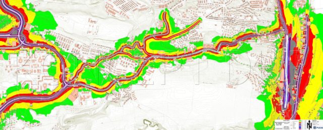 Radlická radiála JZM – Smíchov, stavba č. 9567: hluková studie – hluková mapa – varianta 3p – NOC