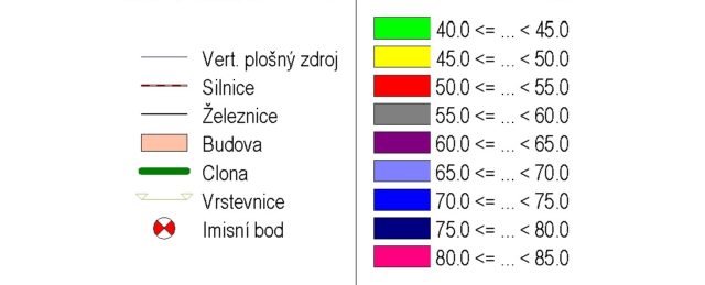 Radlická radiála JZM – Smíchov, stavba č. 9567: hluková studie – hluková mapa – legenda