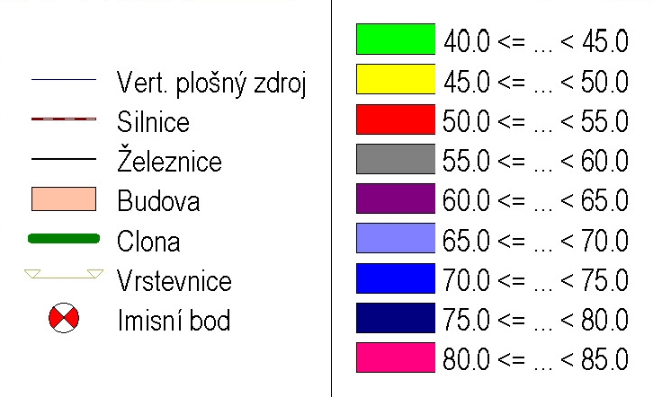 Radlická radiála JZM – Smíchov, stavba č. 9567: hluková studie – hluková mapa – legenda