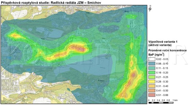 Radlická radiála JZM – Smíchov, stavba č. 9567: imise – aktivní varianta – průměrné roční koncentrace BaP