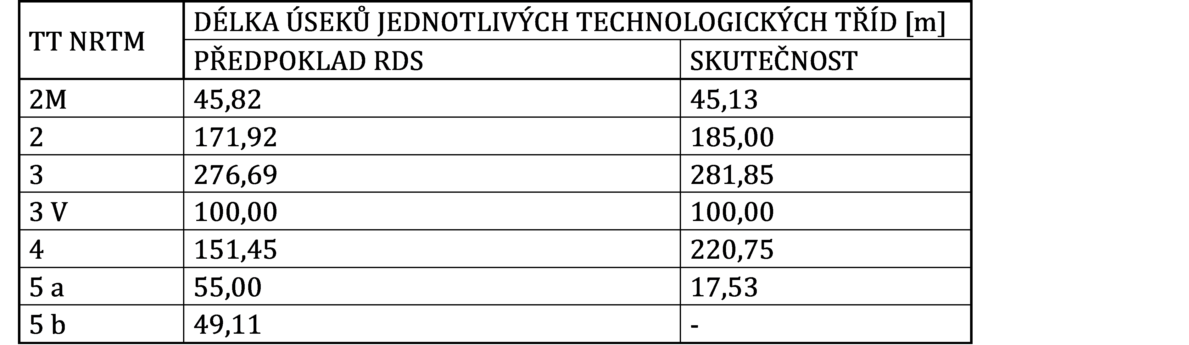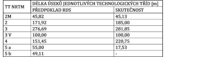 Tab. 1 Technologické třídy NRTM realizované při ražbě